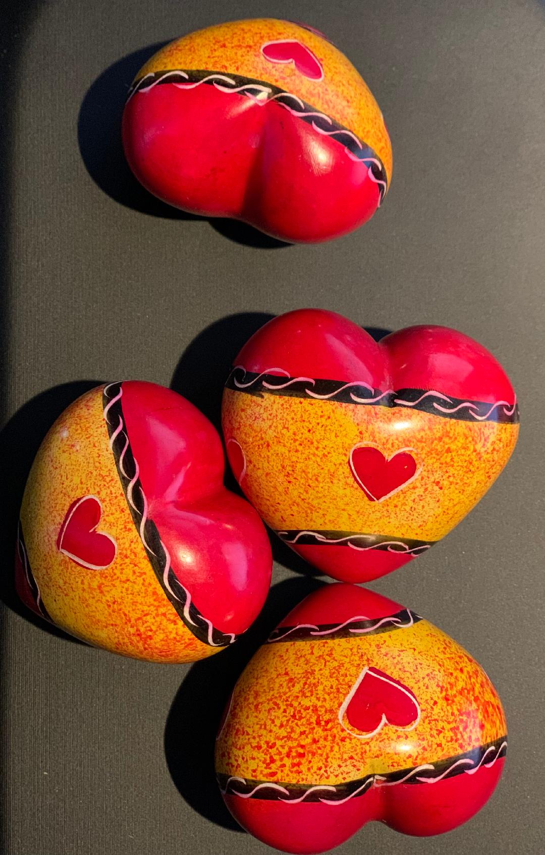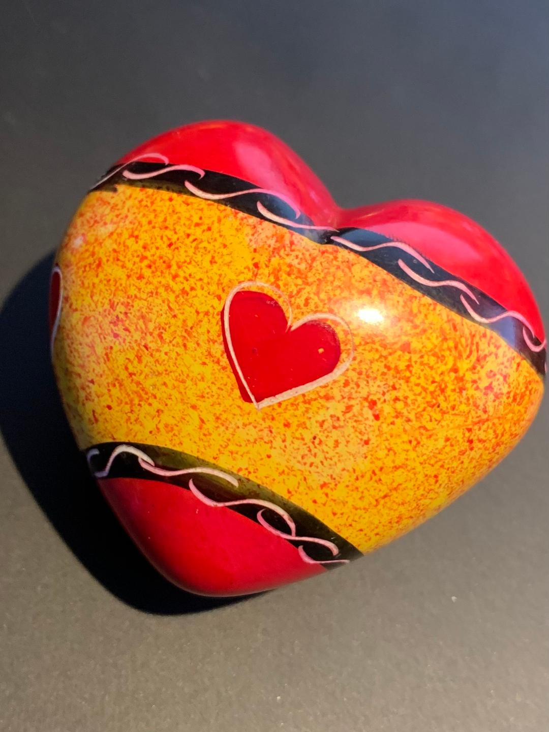 Täljstenshjärta Rött/orange med inristade hjärtan och mönster ca 5cm